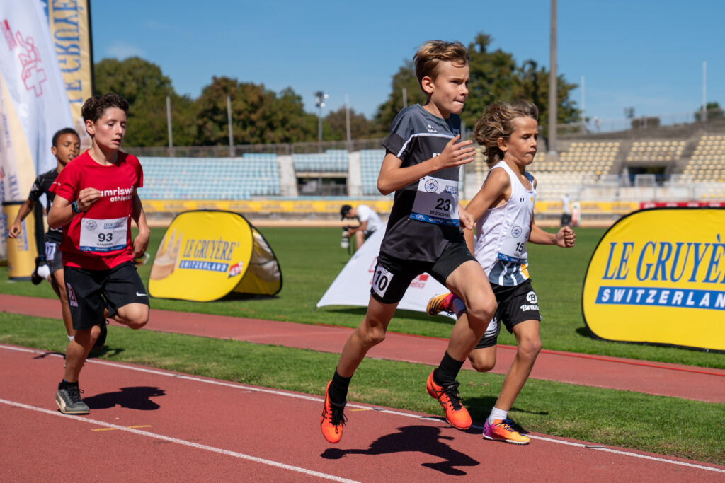 Die schnellsten Athletinnen und Athleten aus den zwölf Regionalfinals im Alter von 10 bis 15 Jahren trafen sich in Lausanne, um sich beim Schweizer Final des MILLE GRUYÈRE in einer festlichen und zugleich wettkampforientierten Atmosphäre zu messen. Am Ende dieses konnten sich zwölf Nachwuchstalente als Siegerinnen und Sieger feiern lassen.
