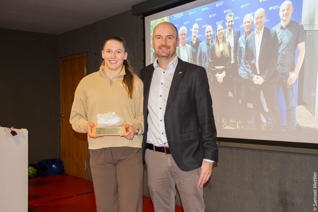 LCZ-Geschäftsführer Marco Aeschlimann mit Stabhochsprung-Europameisterin und Stadtzürcher Sportpreisträgerin Angelica Moser, deren Nachwuchstrainer er kurzzeitig war (Bild: Samuel Mettler)